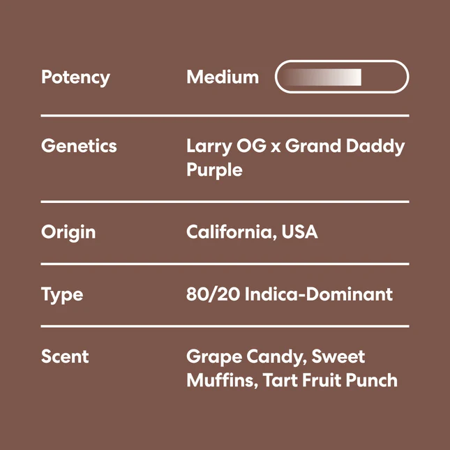 Purple Punch słynie z głęboko relaksującego działania. Łagodnie rozpuszcza napięcia i zaprasza do stanu błogości. Idealny na spokojne wieczory, po długim dniu lub po prostu wtedy, gdy chcesz odnaleźć swoją wewnętrzną równowagę. Każdy zaciągnięcie się jest delikatne, aromatyczne i pozostawia przyjemne, kojące uczucie.